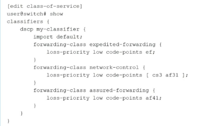 As shown in the exhibit, you have implemented CoS classifiers using Differentiated